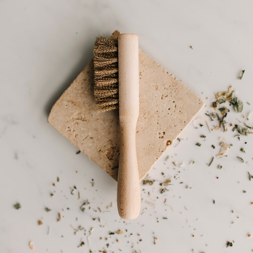 Diese hochwertige Bürste mit rundem, naturbelassenem Holzgriff und Messingborsten dient als Zubehör zu dem Räucherstövchen. Du kannst mit ihr den Sieb von den verbrannten Räucherkräutern und -harzen befreien.