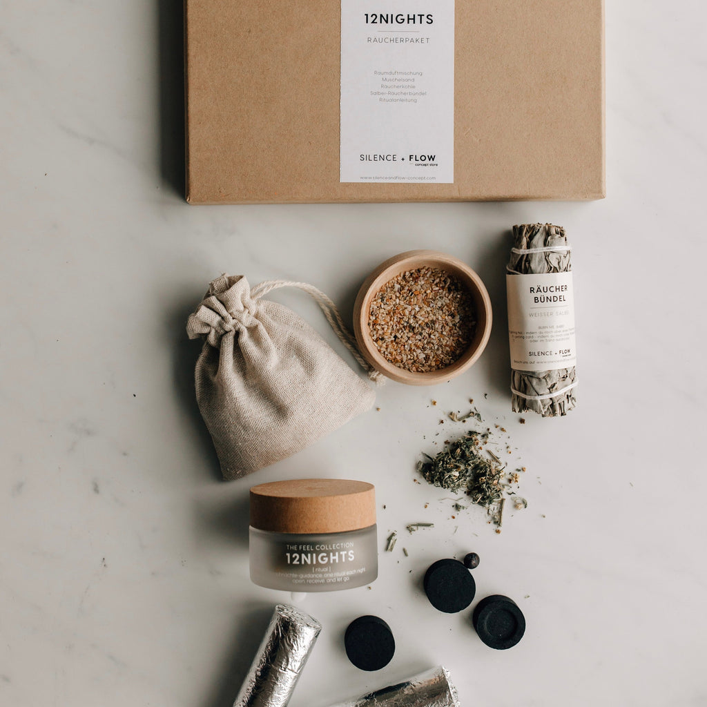 12NIGHT Räucherset: Perfekt für deine Rituale. Diese Mischung reinigt, schützt und bringt eine friedvolle Atmosphäre in dein Zuhause. Sie unterstützt dich dabei, Altes loszulassen und deine Intuition zu stärken.
