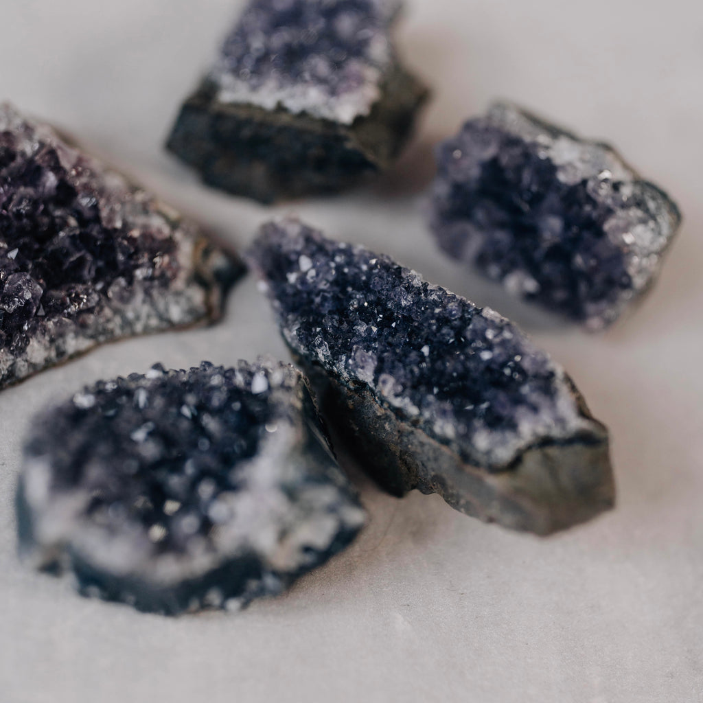 Die Amethyst-Rohsteine stammen aus Brasilien, einem der bekanntesten Fundorte für Amethyst von außergewöhnlicher Farbintensität und Reinheit. Jeder Stein wird sorgfältig bearbeitet, um seine natürliche Schönheit und die rohe, kraftvolle Energie des Minerals zu bewahren.