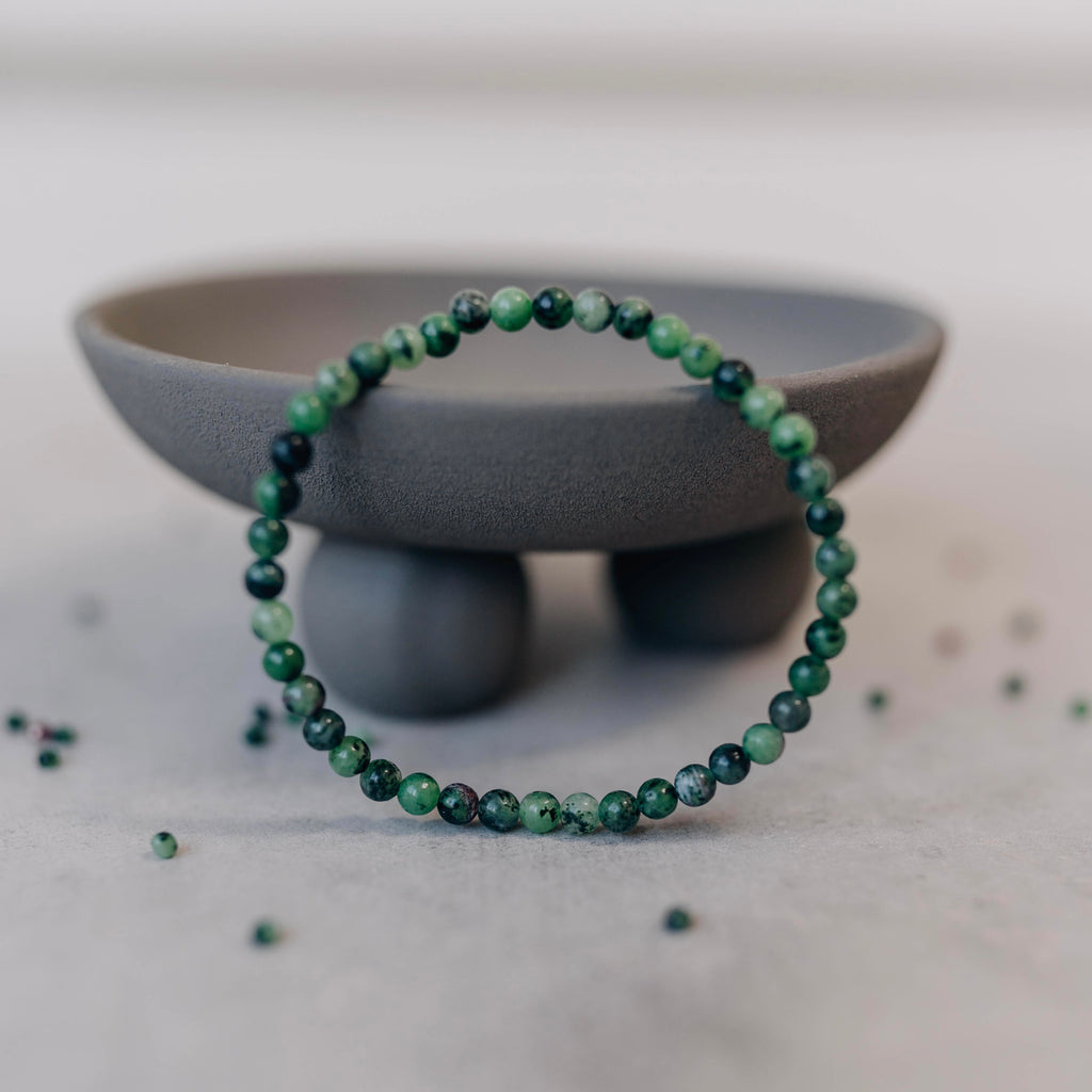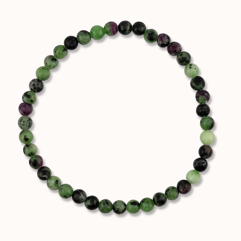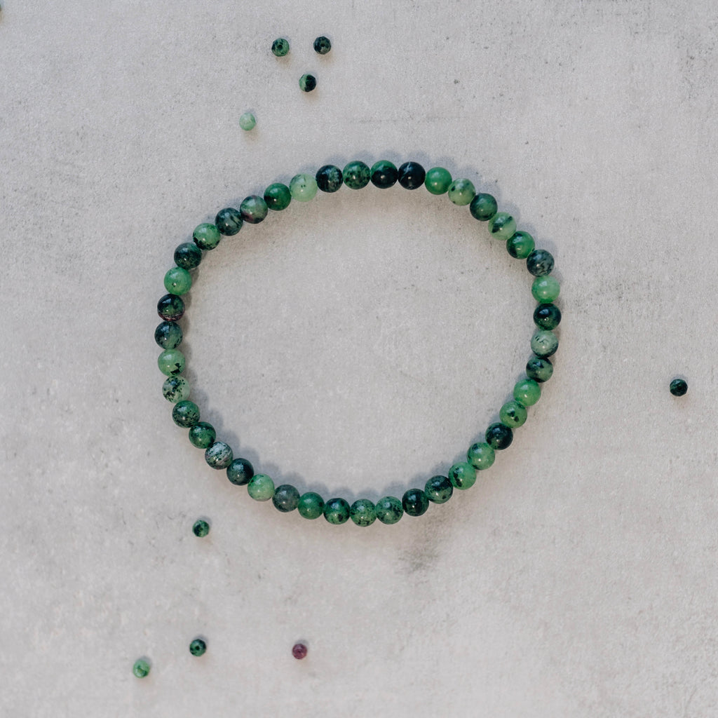 Material: Hochwertige, runde Rubin-Zoisit-Perlen aus Tansania, aufgezogen auf elastischem Nylonband